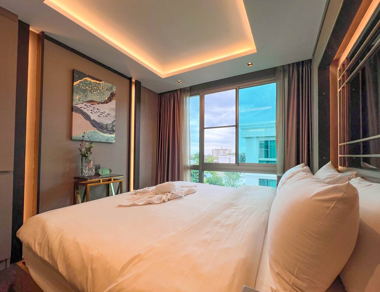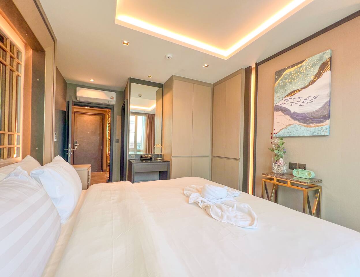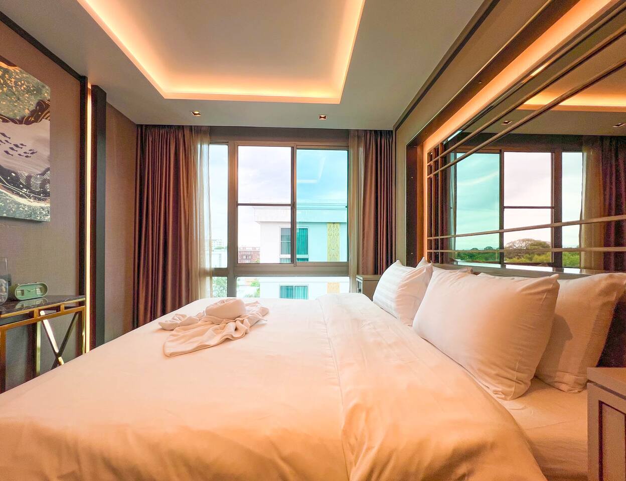 Erawan Glow @ Changklan is a cozy modern condo in the heart of Chiang Mai, just steps from Night Bazaar. Enjoy warm ambient lighting, a plush king-size bed, fast WiFi, smart TV, and a fully equipped kitchenette. Relax in a peaceful, stylish space after exploring the city. Perfect for couples or solo travelers seeking comfort, convenience, and a prime location.