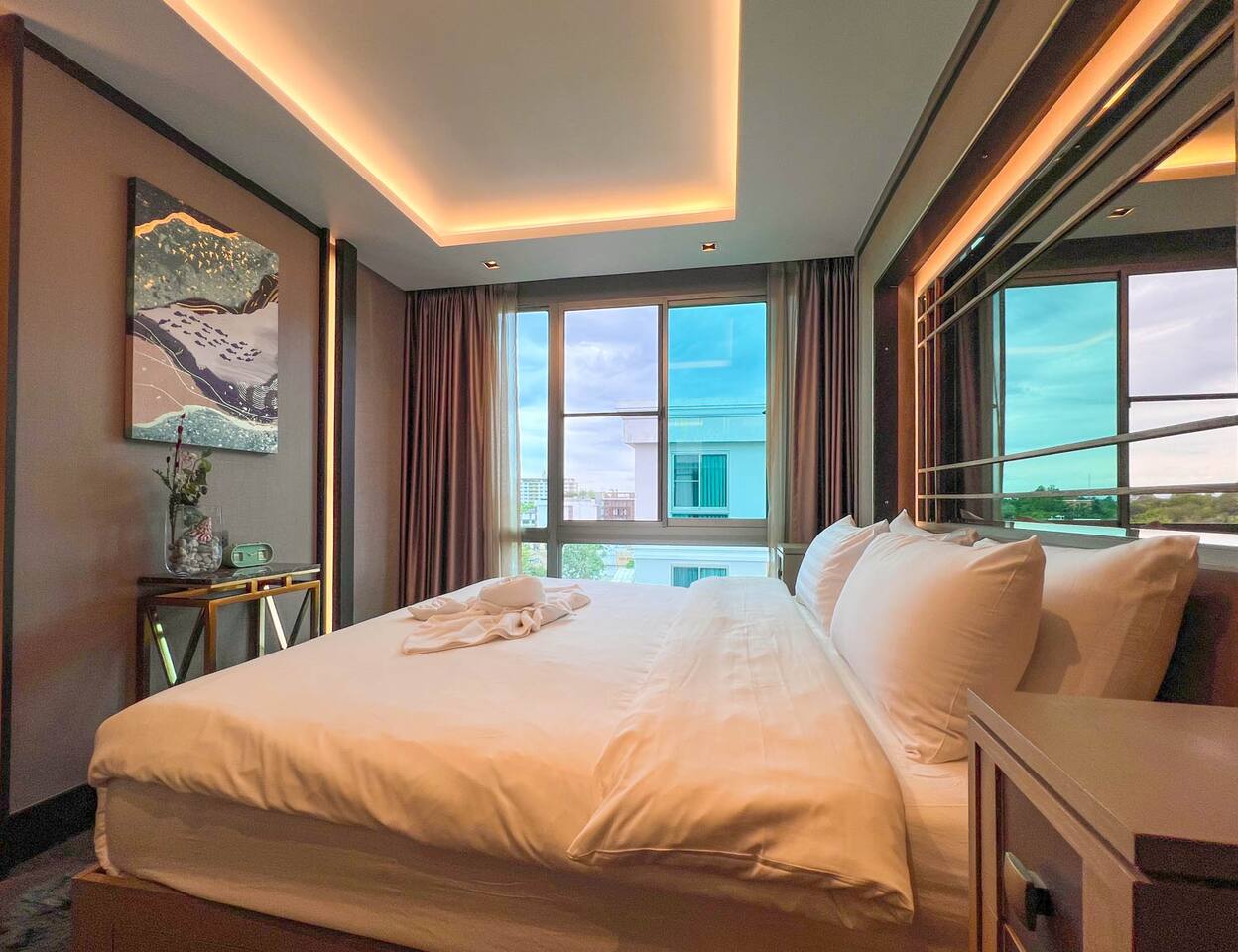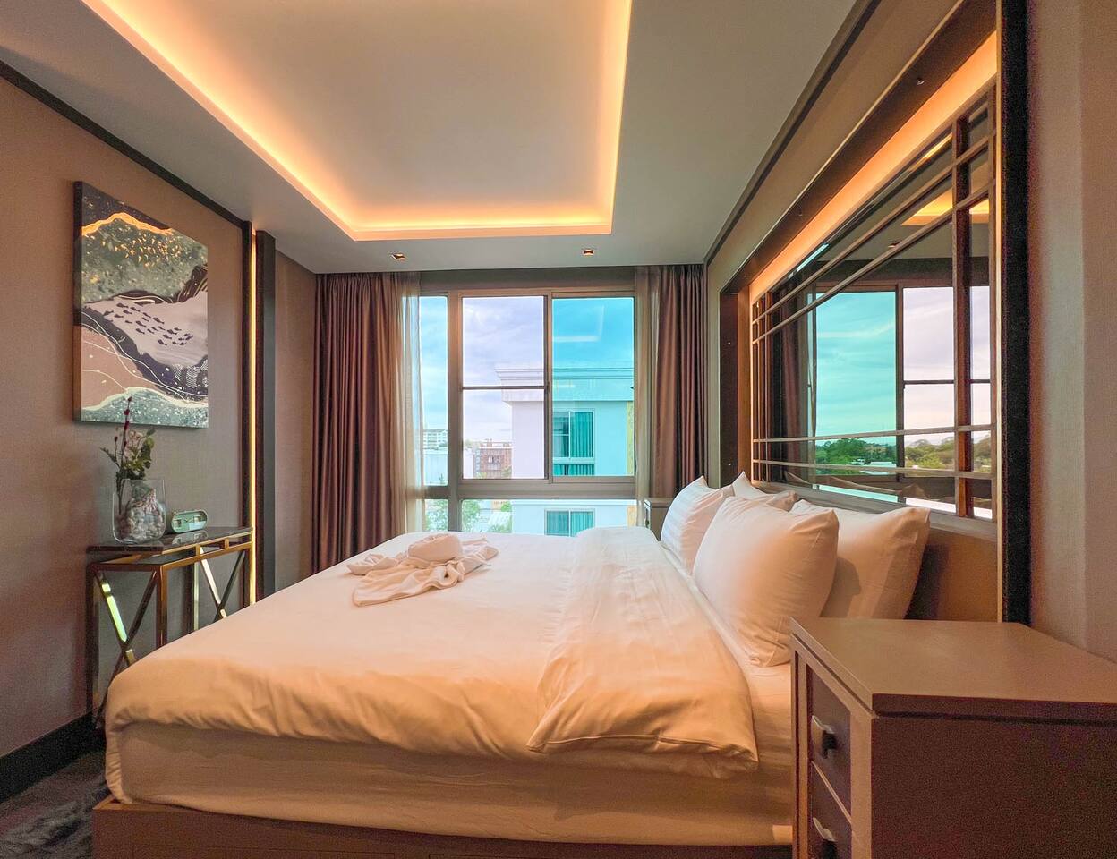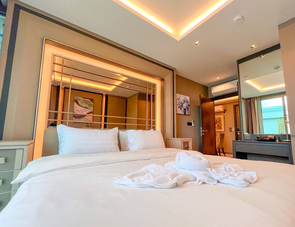 Erawan Glow @ Changklan is a cozy modern condo in the heart of Chiang Mai, just steps from Night Bazaar. Enjoy warm ambient lighting, a plush king-size bed, fast WiFi, smart TV, and a fully equipped kitchenette. Relax in a peaceful, stylish space after exploring the city. Perfect for couples or solo travelers seeking comfort, convenience, and a prime location.