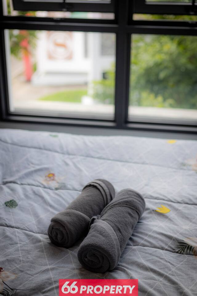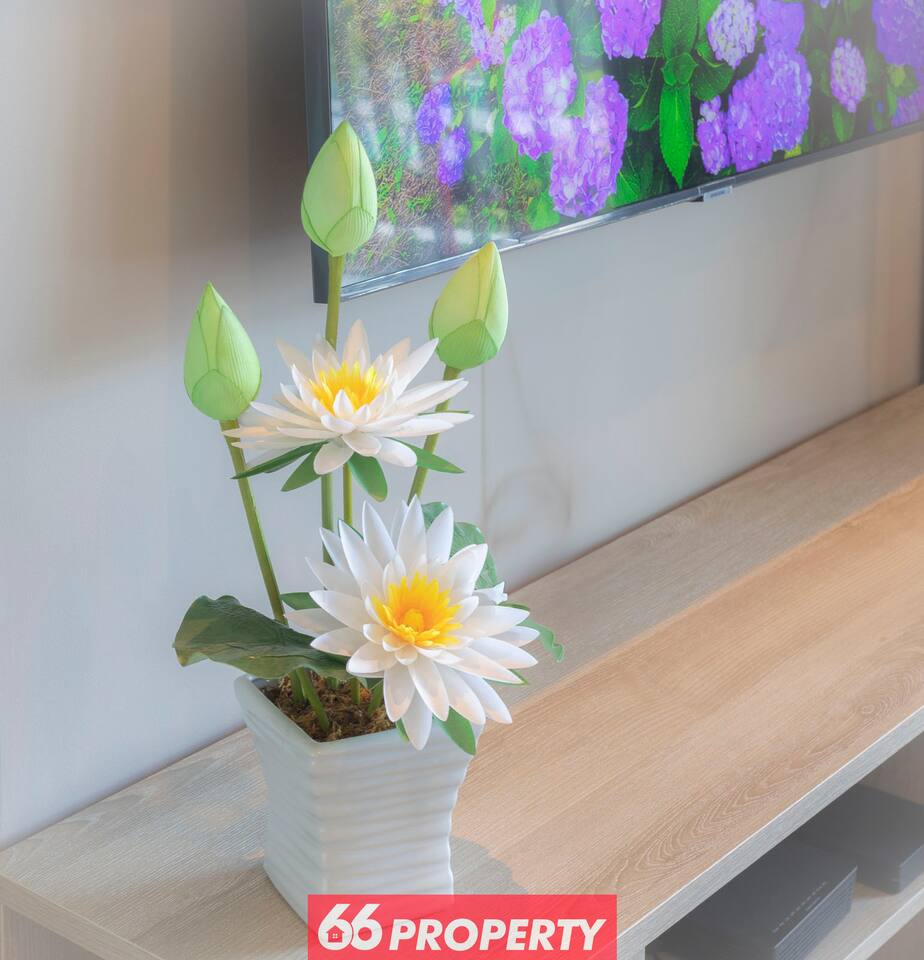 New and fully furnished living room, bedroom and kitchen will all amenities such as - 4K 43" TV, - high speed Internet (500 MBPS+) - two air conditioners, - washing machine, - microwave, - electric water kettle, - rain shower, - blackout curtains and blinds - modern toilet, - high quality kitchen equipment, - electric glass induction, - ventilator hood, - trash collection, - clothes dryer, - soft top mattress for the main mattress - balcony with nice views. Outdoor - infinity pool - fitness studio - tropical garden with koi fish - 24 hours guard security with cameras everywhere - entry only with dedicated cards for outdoors and condo - parking available