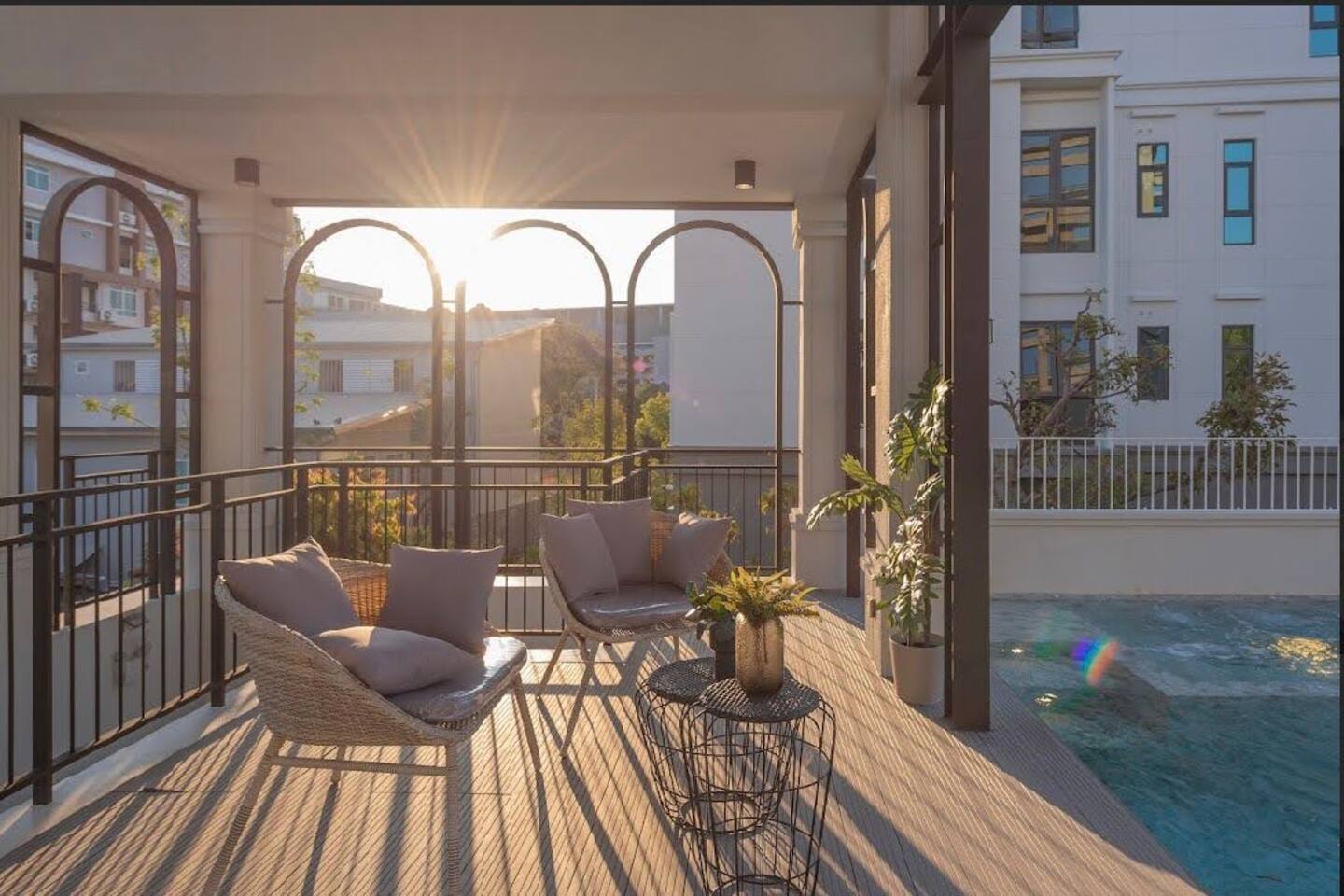 20+ fresh coffee brewing cafes Learn archery next to house Central festival (largest mall of chiangmai) is the front (3mins away) Chauffeur service to drop to the mall 24 hours food delivery at home Highly secure premise with multiple guards and cameras Church 1 min away 30+ bars in a distance of 3-5 mins cinema, best gym, 50+ restaurants in the mall (3 mins) Sepak Takraw arena 2 mins away Isolated locality for more privacy