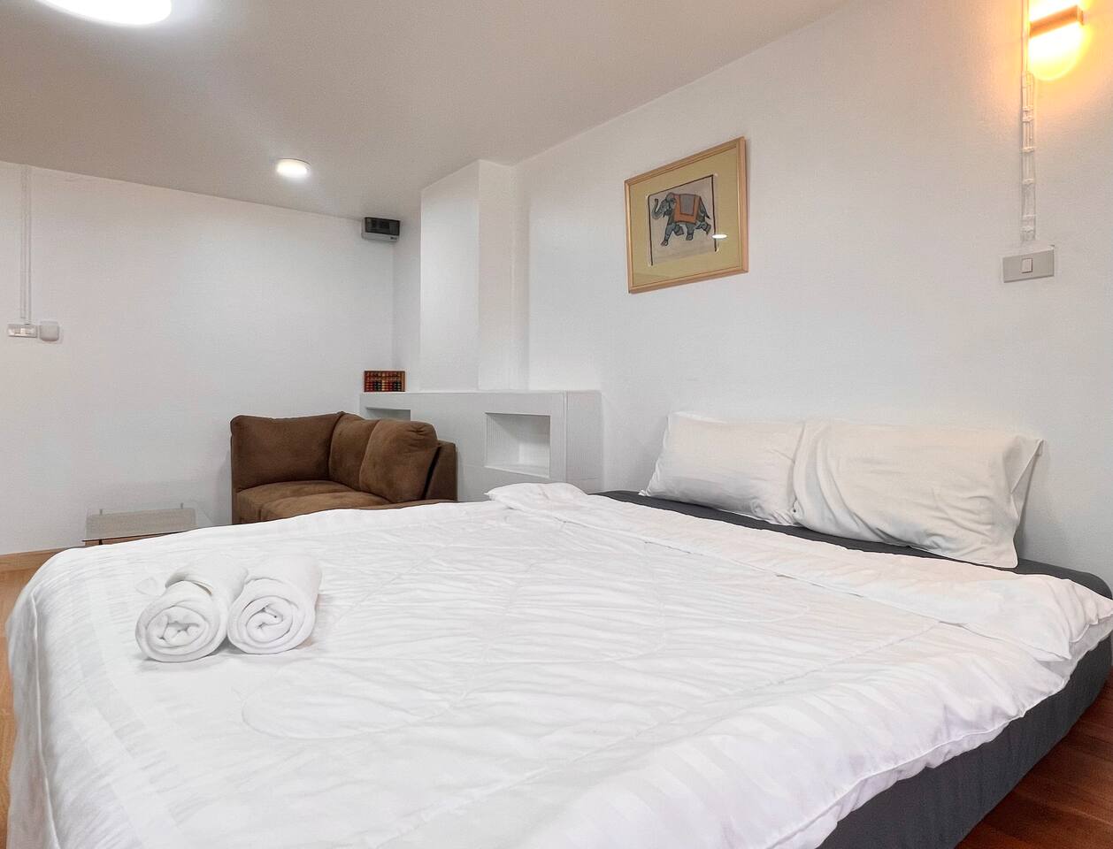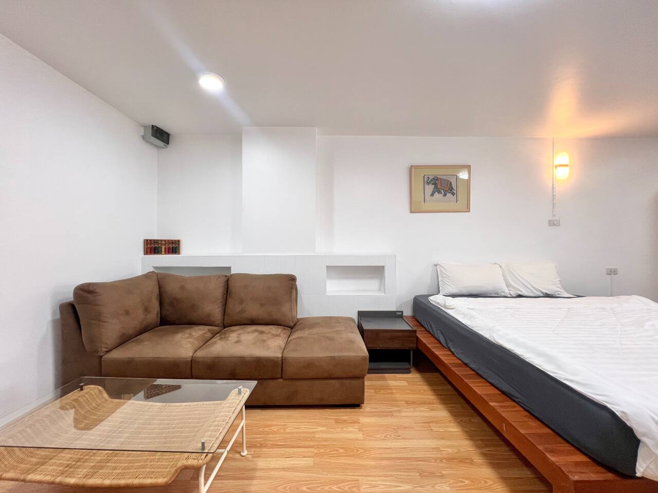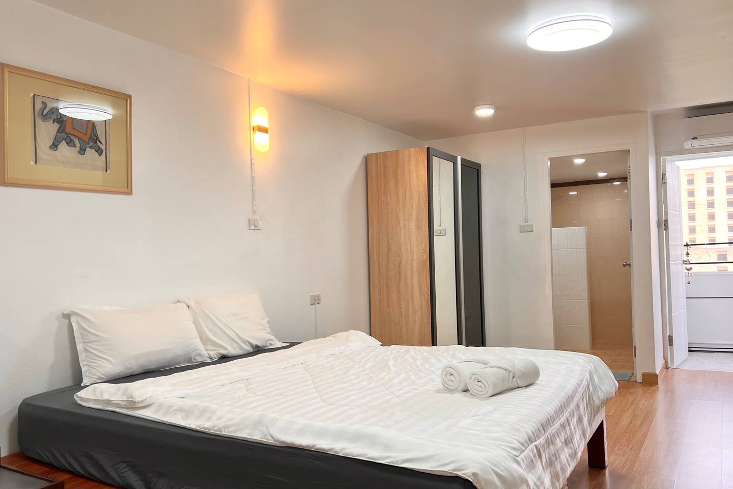Relax in this cozy, minimalist 1-bedroom condo near Nimman, Chiang Mai’s trendiest area. Fully furnished with everything you need — kitchen, comfy bed, workspace, and balcony view. Surrounded by cafés, restaurants, and laundry shops, yet tucked in a peaceful corner. Perfect for work, rest, or exploring the city.
