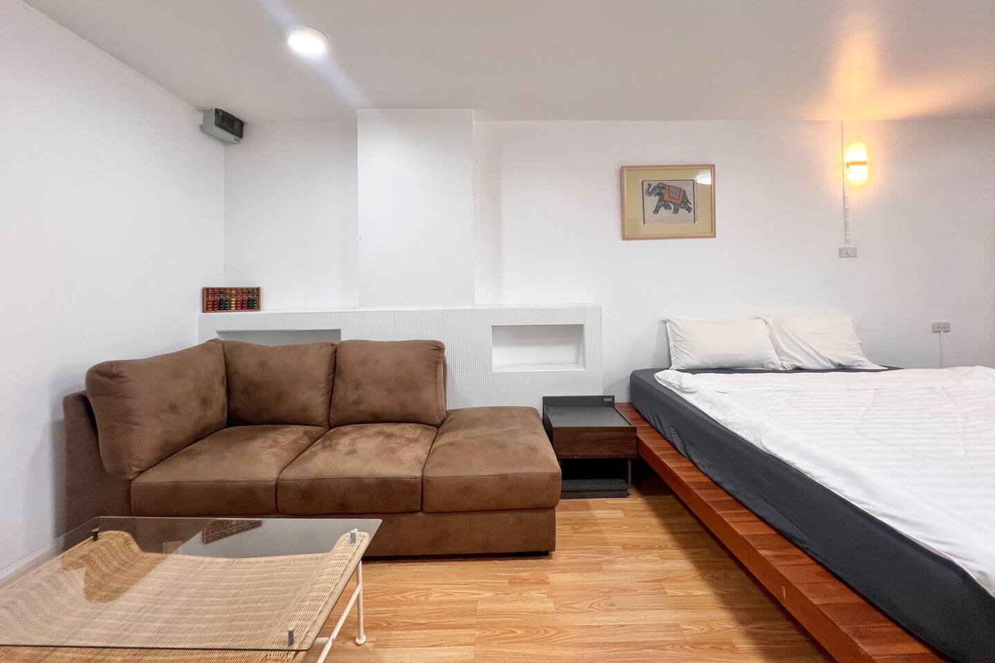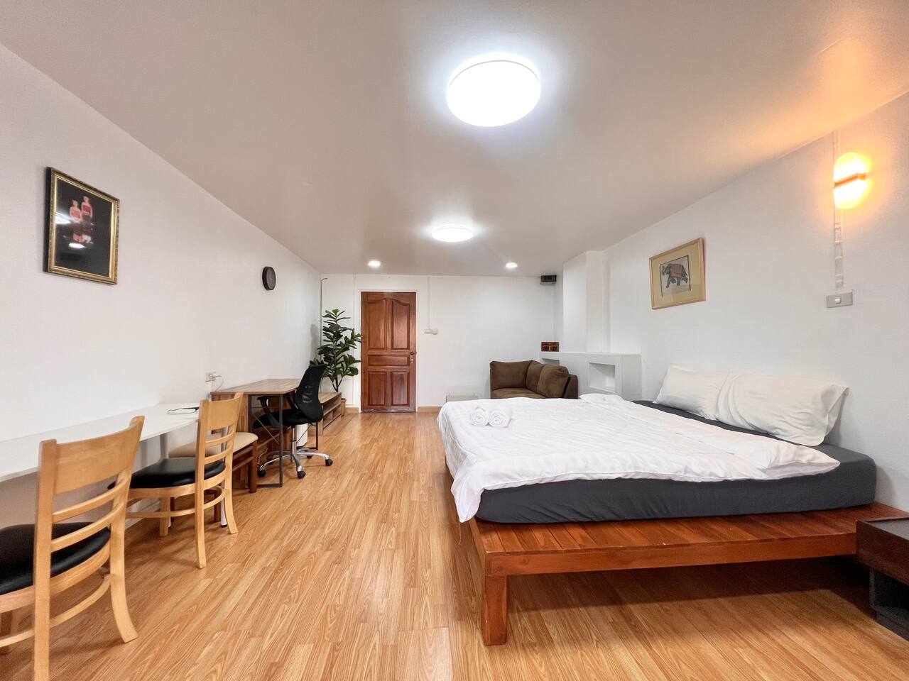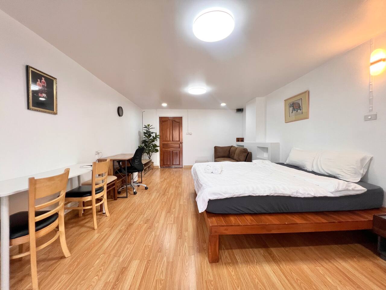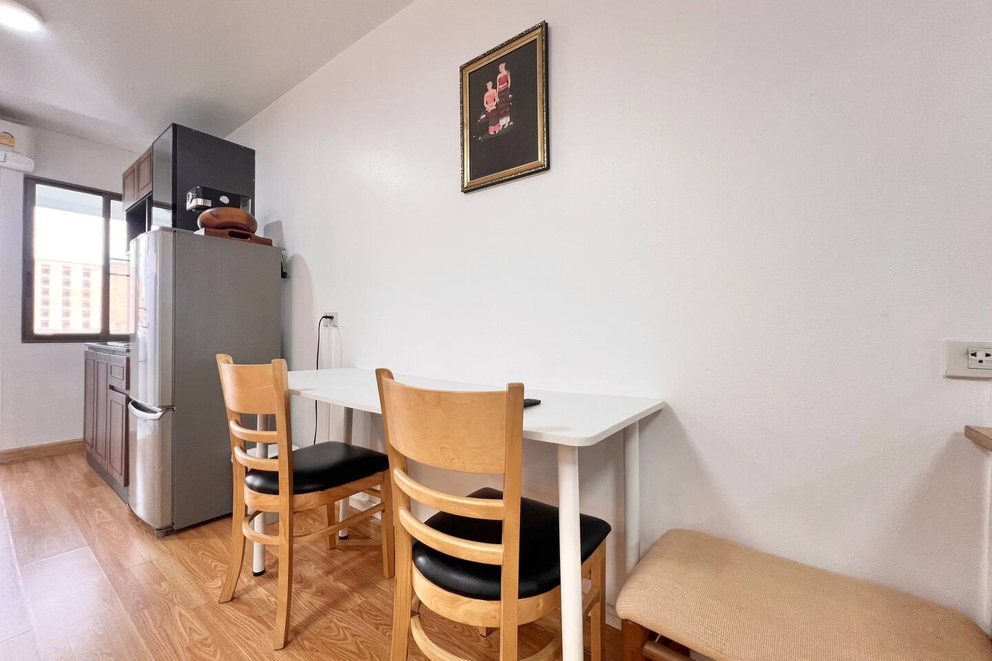 Relax in this cozy, minimalist 1-bedroom condo near Nimman, Chiang Mai’s trendiest area. Fully furnished with everything you need — kitchen, comfy bed, workspace, and balcony view. Surrounded by cafés, restaurants, and laundry shops, yet tucked in a peaceful corner. Perfect for work, rest, or exploring the city.