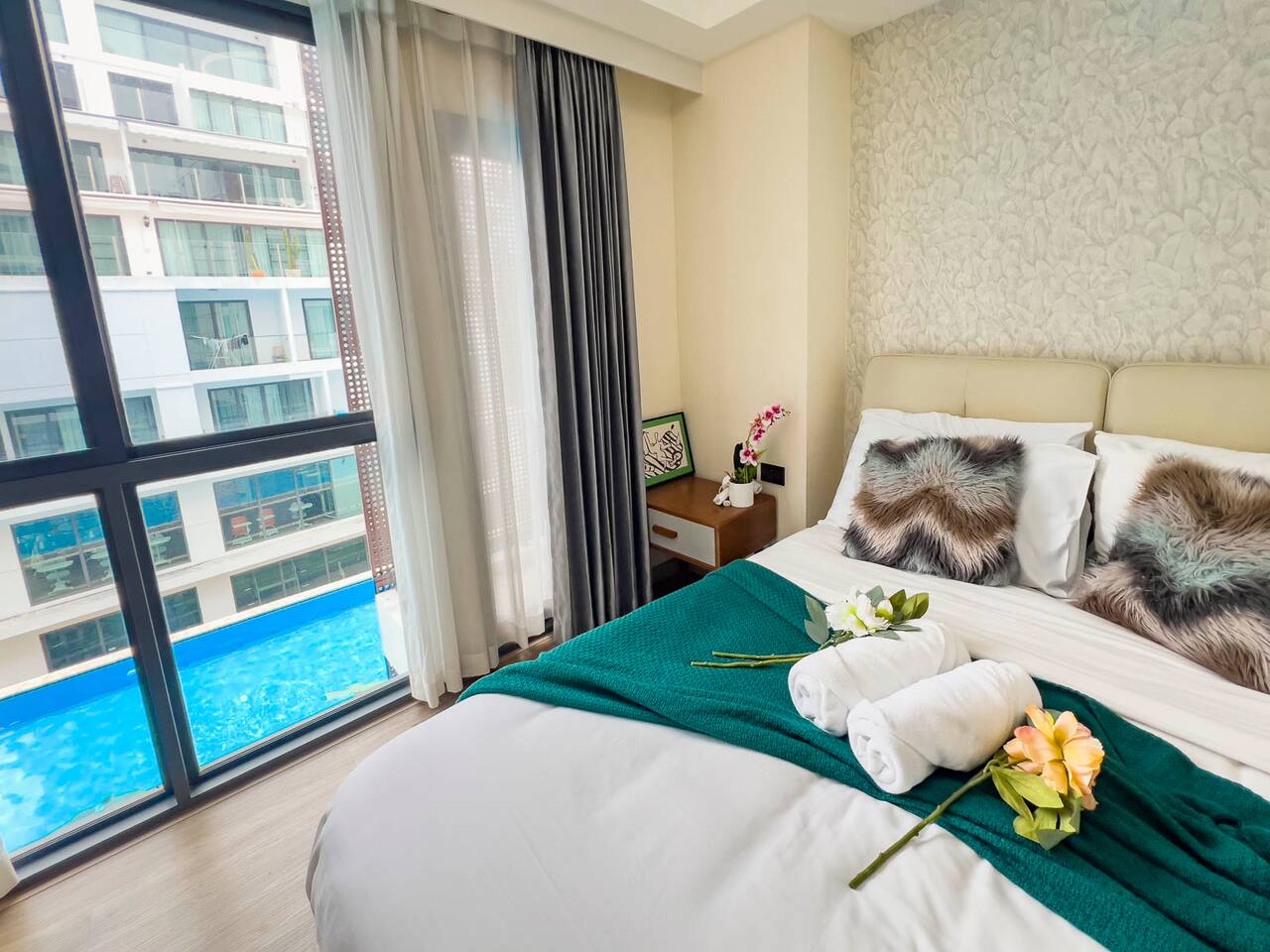 [Largest Pool]Luxury 2BR Pool View | 2 min Central