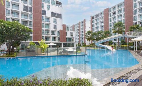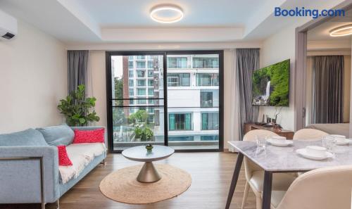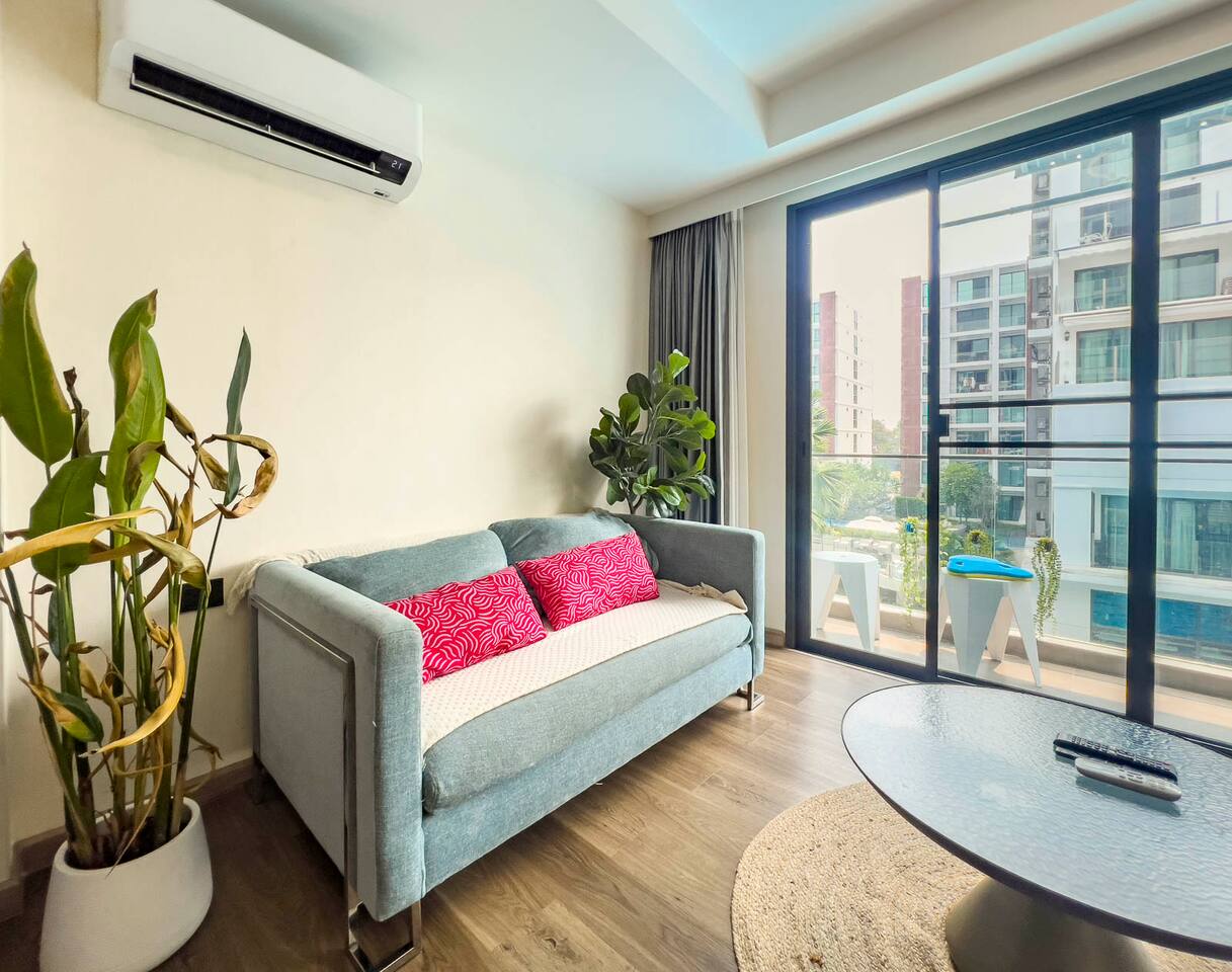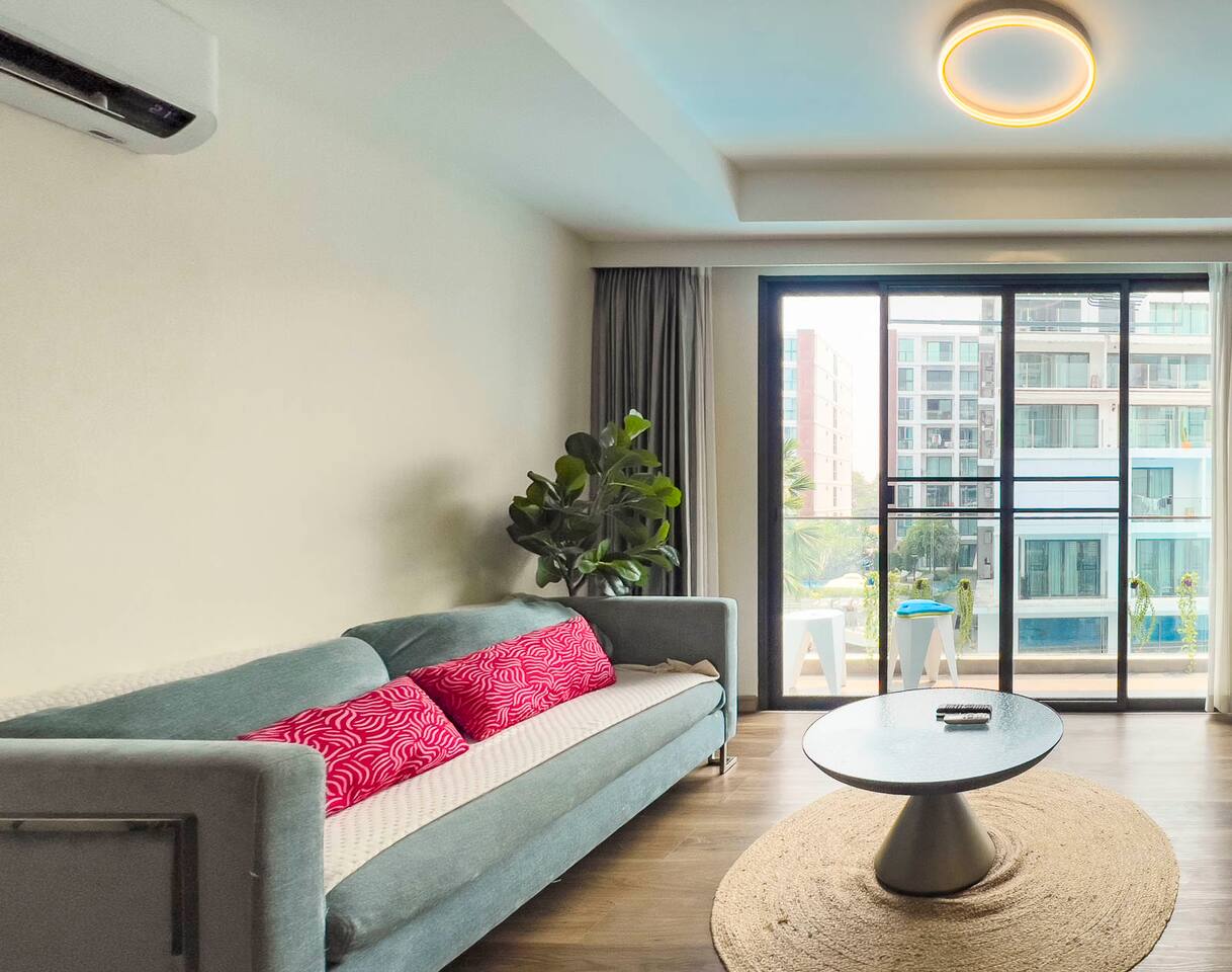 Space: Discover the largest pool apartment in the heart of Chiang Mai. This rare 2-Bedroom unit features a spacious and bright living room, perfectly designed for families. Experience a seamless stay with fast internet access and full amenities provided in every room. Perfect location - just minutes from Central Festival (Northern Thailand's largest mall), 10-minute drive to Old City or trendy Nimman. Combine modern comfort with family adventure.