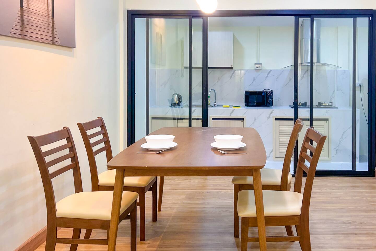 - Kitchen Space where guests can cook their own meals