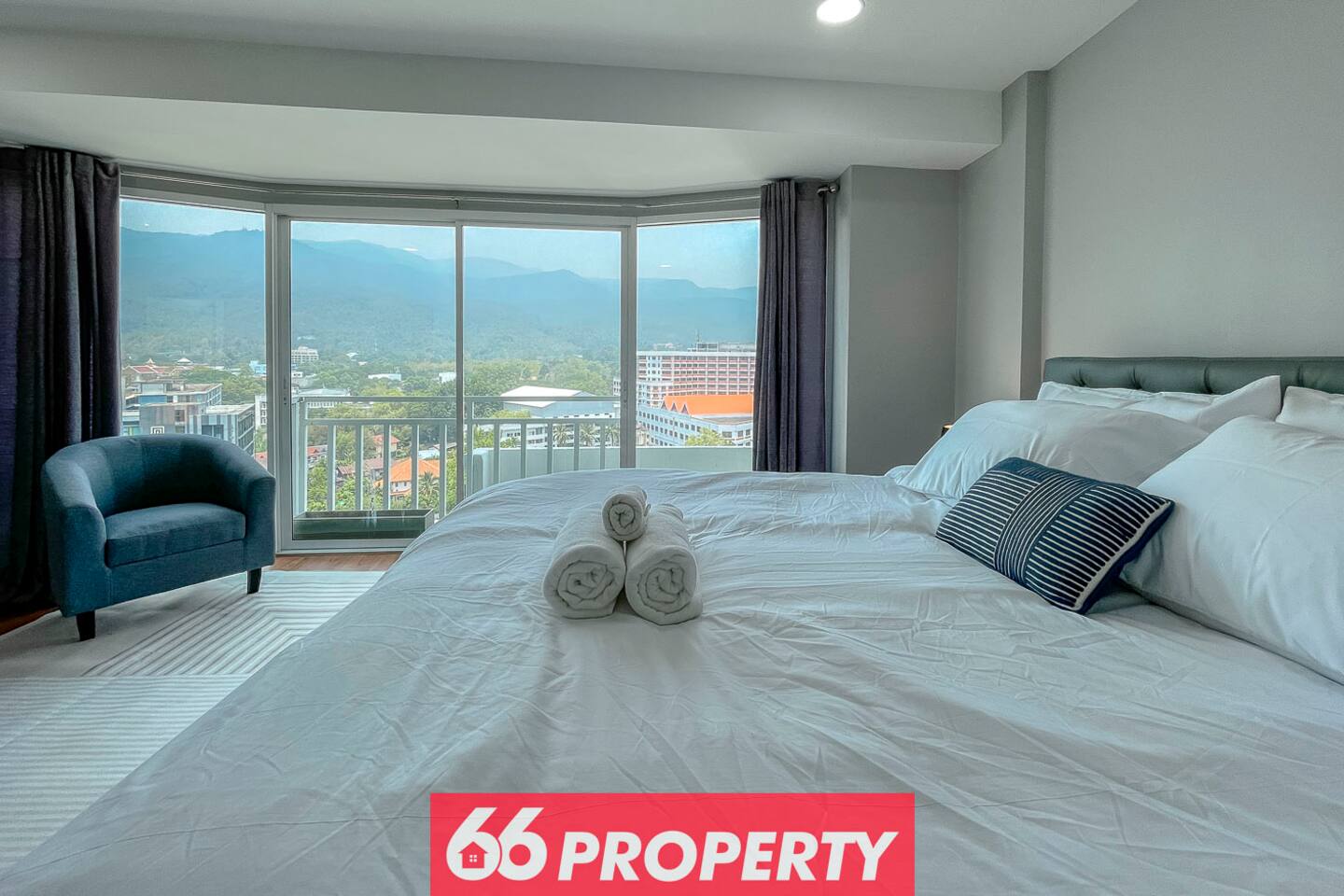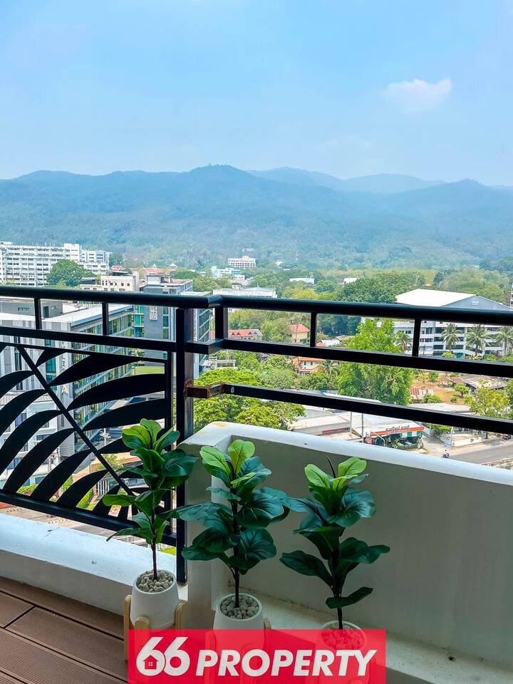**Electricity cost is not included for stays of 28 days or longer** NB! Month long stays do NOT include electricity costs. Discover serenity in our 2-bedroom duplex, boasting breathtaking mountain panoramas. Just a 5-minute stroll from Nimman Road, indulge in the city's vibrancy while enjoying: - Stunning mountain views from the 12th floor - Fully equipped kitchen with an oven. - Smart TV. - Luxurious king-sized bed in the master bedroom - Pool access within the building