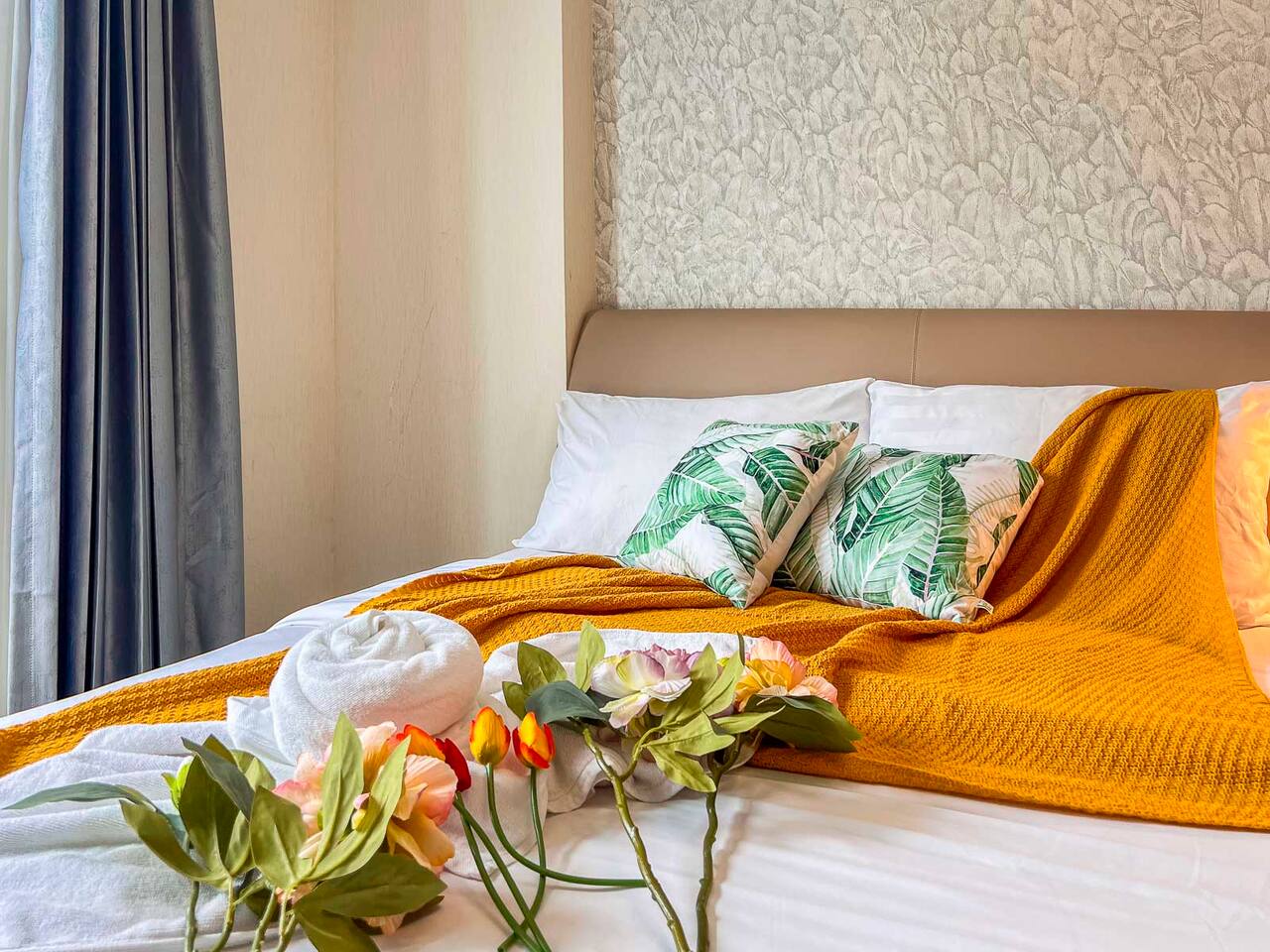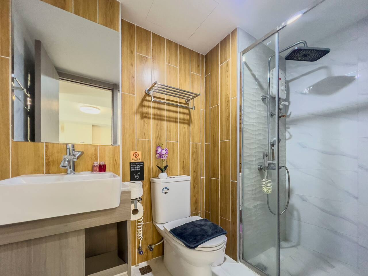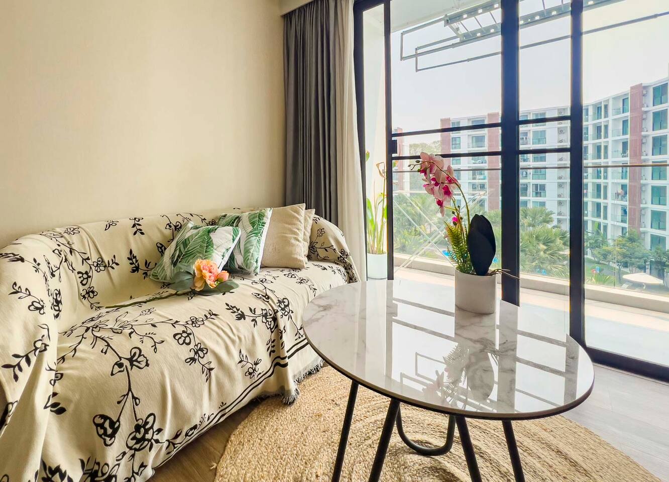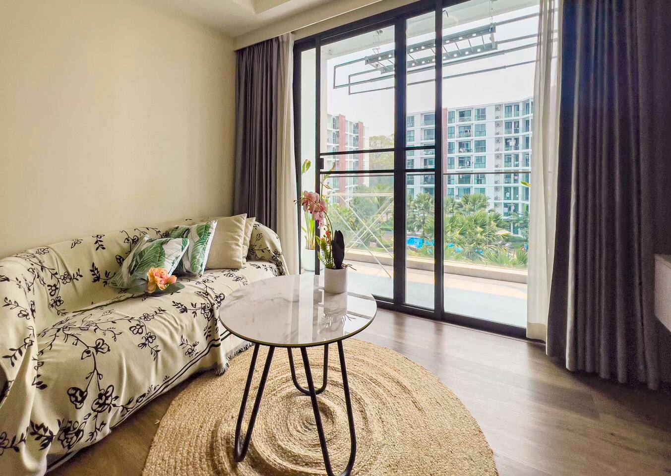 **Electricity cost is not included for stays of 28 days or longer** Space: Wake up to the stunning blue of the area's largest swimming pool. Ideal for couples or solo travelers, this unit offers a spacious and bright interior with high-speed private Wi-Fi. Enjoy a worry-free stay with fully equipped facilities and amenities. Minutes from Central Festival mall, 10 mins to Old City/Nimman.