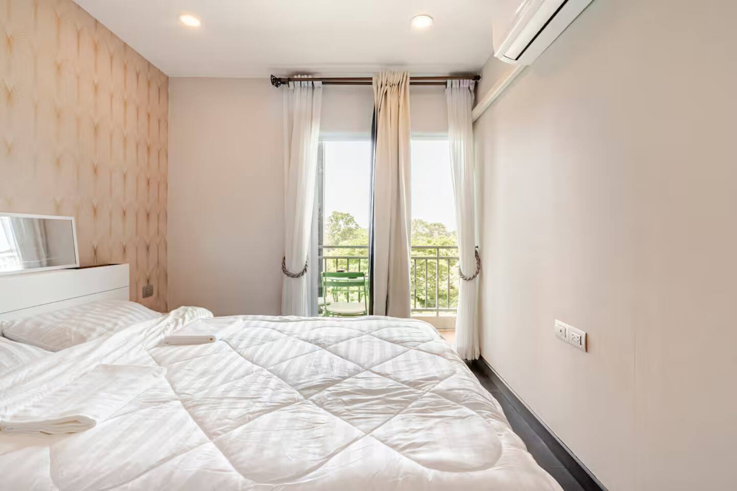 Enjoy a calm and comfortable stay in this modern one-bedroom condo, thoughtfully designed for relaxation. The unit features a bright living area with a cozy sofa, a well-equipped kitchen, and a comfortable bedroom for restful nights. Natural light fills the space, creating a warm and welcoming atmosphere.