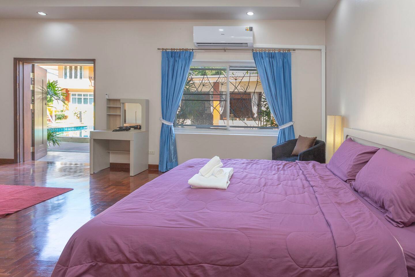 This fully furnished studio is on the a secured compound of "Desire Luxury Resort" and located in a nice and safe neighborhood with shops and restaurants. De studio is suitable for 2 people (extra beds possible). The studio is on a quiet tropical garden with swimming pool, a restaurant and several patio's. There are several shopping malls nearby.
