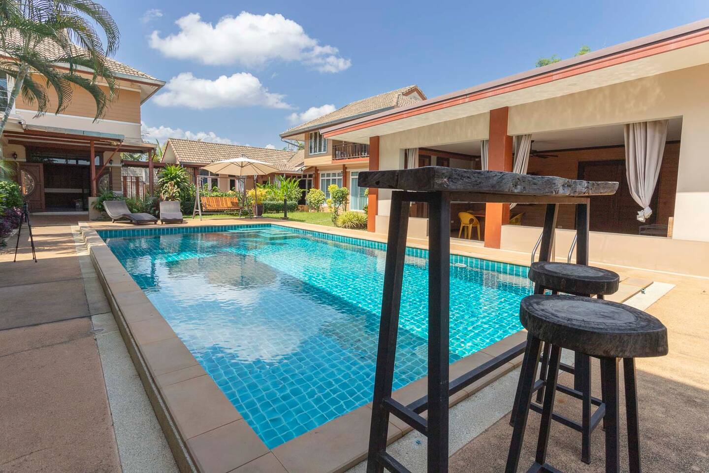 The neighborhood is quiet and safe with many shops, markets and restaurants (Thai and foreign) in the immediate vicinity. Meechok Plaza is two minutes from the villa, where you can find an international supermarkets (Rimping, Tops), many small shops, restaurants and a big fresh market. Other shopping malls are located on 5 minutes drive from the compound. The "Old City" takes a 10 minutes drive from the villa.